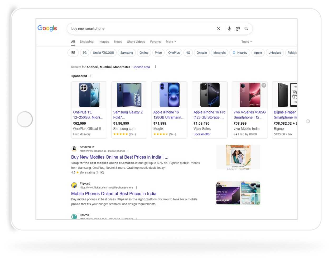Showcase your products directly in Google search results with visually appealing shopping ads. Perfect for E- commerce businesses looking to increase product visibility and drive sales.